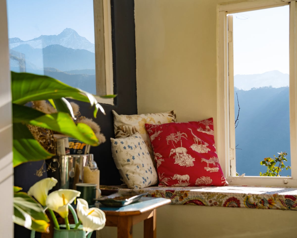 Une maison au cœur de l'Himalaya, loin de l'agitation de la ville. Profitez d'une vue sereine sur la vallée entourée de pruniers, pommiers, kakis et autres arbres. Un endroit paisible, parfait pour des vacances relaxantes ou des vacances de travail. Réveillez-vous avec une vue incroyable sur les montagnes, profitez d'une journée de détente en lisant un livre sur le balcon ou explorez les nombreux sites et activités d'aventure à proximité. Cet endroit a quelque chose à offrir à tout le monde.