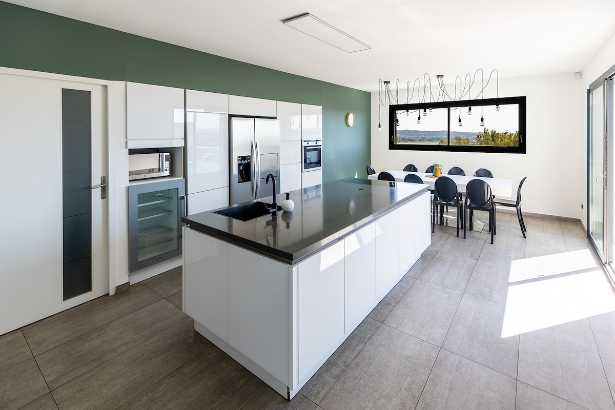 Perchée sur les hauteurs, cette villa contemporaine vous offre une vue panoramique exceptionnelle sur la Provence, du Mont Ventoux aux Alpilles. Pensée pour les séjours en tribu, elle accueille jusqu’à 15 personnes dans un cadre à la fois élégant, convivial et apaisant. Ici, chaque moment devient un souvenir : coucher de soleil en terrasse, repas partagés, baignades avec vue…