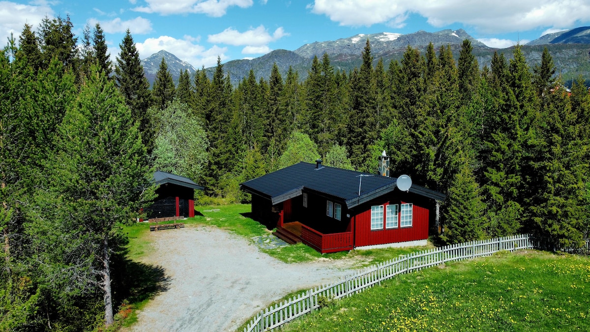 Røyri is a bright and nice cabin in beautiful surroundings right by the water Røyri in Valdres. The cabin was built in 2006, and it has a white wooden roof, walls and floor. Large windows provide lots of light. There are three bedrooms with 6 beds, as well as a single room with a sofa bed for 2. There are two bathrooms, both with shower/WC, as well as a sauna and washing machine. The living room and kitchen are open plan. The kitchen is well equipped
