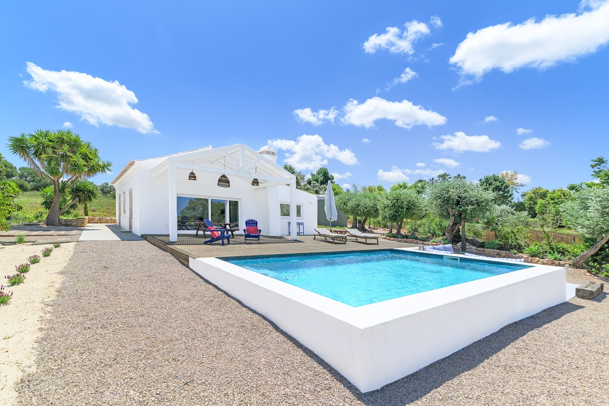 Découvrez la vie moderne d'inspiration méditerranéenne dans cette villa exquise de Santa Bárbara de Nexe. À quelques minutes de l'aéroport de Faro et d'Almancil, cette retraite sereine offre une piscine chauffée, un jacuzzi sur le toit, un salon intérieur-extérieur transparent, une cuisine extérieure et des intérieurs élégants de style méditerranéen. Parfait pour les familles, les couples ou les groupes à la recherche d'une escapade mémorable avec des sentiers de randonnée, des vues sur la campagne et un accès aux plages, aux terrains de golf, aux magasins et aux restaurants. Envoyez-nous un message !