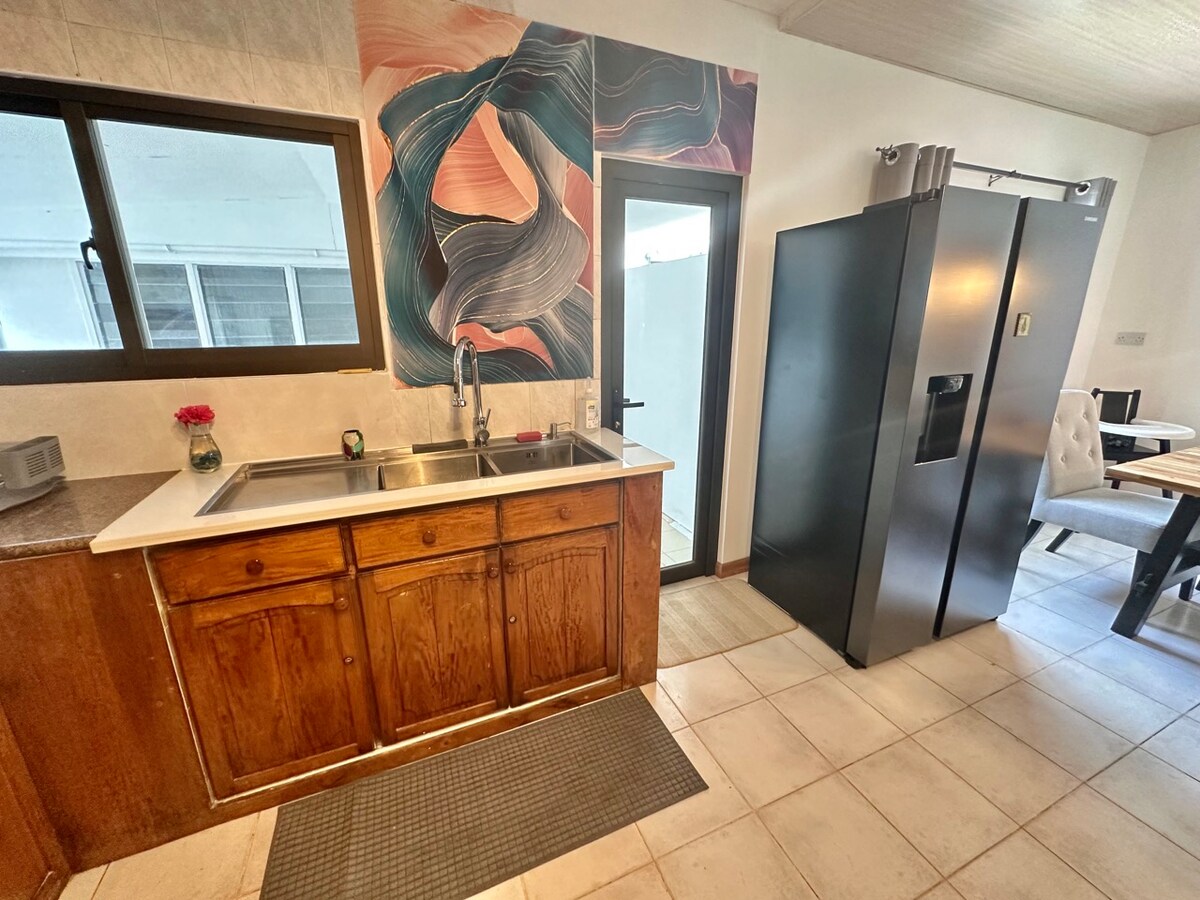 CORNER BAY APARTMENTS, BEAU VALLON, une maison loin de chez vous. Situé à 4 minutes à pied de la plage et de toutes les commodités nécessaires. Notre maison est sur place afin que nous puissions accueillir les arrivées anticipées et les départs tardifs. L'appartement dispose de tous les nouveaux équipements. Panneau solaire pour l'approvisionnement en eau chaude dans tout l'appartement. Les voyageurs qui réservent pour de longs séjours profiteront d'un barbecue créole. Vous êtes invités à participer à la préparation pour acquérir des connaissances sur la préparation créole.