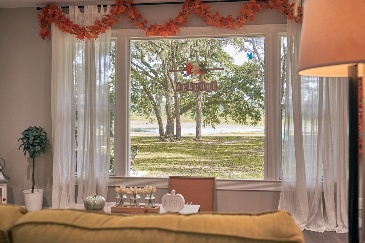 Détendez-vous dans cette ferme paisible, spacieuse et familiale avec une ambiance tropicale pittoresque dans le jardin. Nous sommes à quelques minutes de plusieurs sources ainsi que des rivières Suwannee, Ichetucknee et Santa Fe. À seulement 6 miles de la capitale mondiale de la plongée de printemps et de la ville la plus proche pour l'essence/la nourriture/etc. Notre maison dispose d'équipements qui en feront un endroit idéal pour que votre famille passe des vacances mémorables pour les adultes et les enfants. Profitez de notre espace de vie intérieur-extérieur, de notre foyer, de notre maison et de notre ferme entièrement approvisionnés.