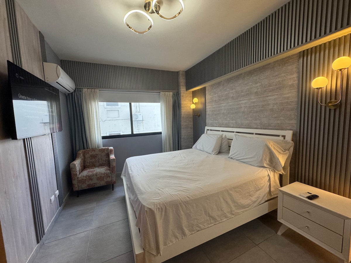 Appartement moderne situé au cœur de Bella Vista. Nous avons un espace social sur le toit avec une piscine picuzzi, un espace enfants, un bar et une terrasse. 1 chambre avec SmartTV 50", un bureau, un salon-salle à manger avec SmartTV 50", une cuisine, une buanderie, 1,5 salles de bains, un balcon, un portier 24 h/24, un parking avec portail électrique. À proximité des centres commerciaux, des bars, des restaurants, des supermarchés, des banques, des parcs et de la vie nocturne. Quartier très sûr, avec accès facile et déplacement vers n'importe quelle partie de la ville.