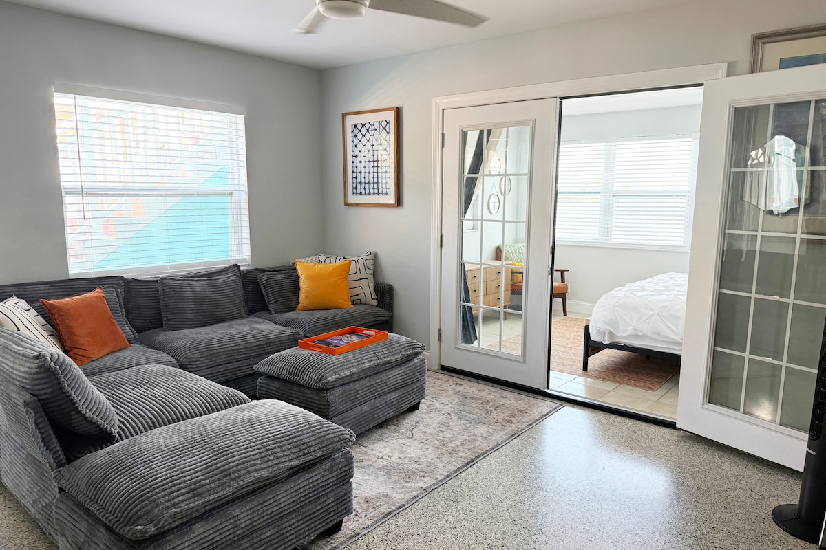 🌴 😎 Superbe retraite de style Key West avec : - Lit Queen Size en mousse à mémoire de forme - Porche couvert pour se détendre - Linge de lit d'hôtel, serviettes et de nombreux équipements 🏄♂️ Profitez du décor et des accents de la plage dans cette spacieuse propriété de deux chambres et deux salles de bain. Située à moins de trois miles du sable blanc et fin de Clearwater Beach 😎 (classée plage n° 1 aux États-Unis par Trip Advisor). Détendez-vous au bord de la piscine surdimensionnée de style complexe hôtelier et du club-house. À distance de marche des restaurants et épiceries à proximité.