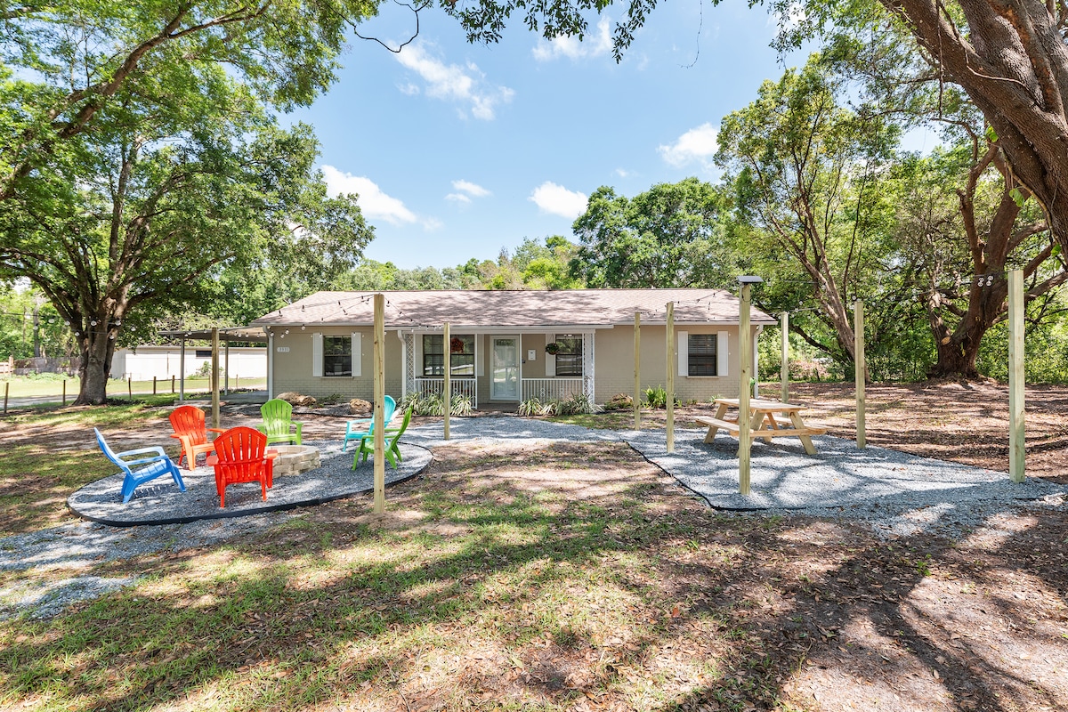 Niché au cœur des superbes sentiers Santos d'Ocala. Cette maison récemment rénovée offre la retraite parfaite pour ceux qui recherchent confort, aventure et tranquillité. La maison a une cour avant et une cour arrière spacieuses, beaucoup d'espace pour se détendre, explorer et créer des souvenirs inoubliables. Le salon rustique vous invite à vous détendre après une journée d'aventures sur les sentiers ou une soirée confortable au coin du feu sous les étoiles. Ce logement offre le mélange parfait de nature et de confort.