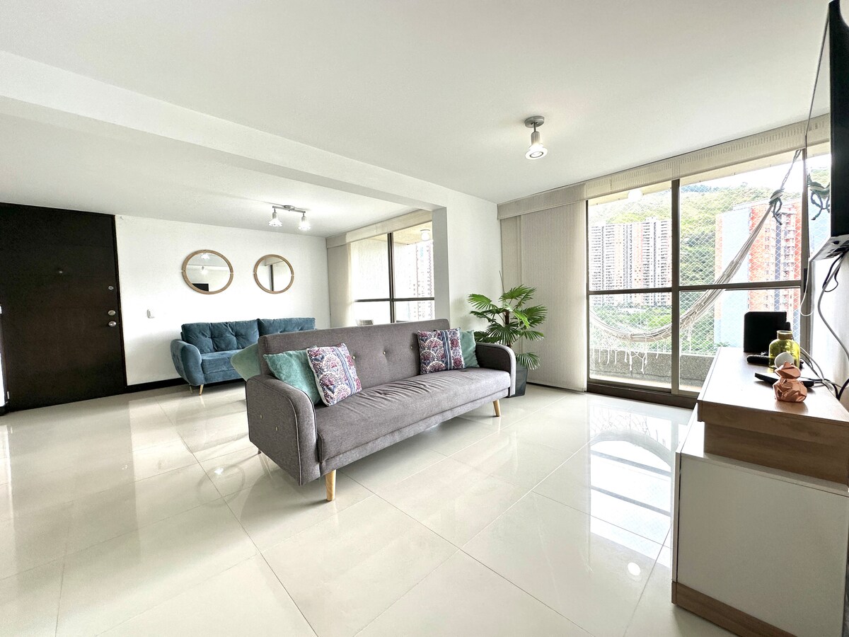 Appartement moderne et entièrement équipé, cet appartement est situé à seulement 15 minutes d'El Poblado, Laureles et du centre de Medellín, dans une copropriété résidentielle dans un quartier très calme et avec tous les services (piscines adultes et enfants, sauna, salle de sport, terrain de micro-foot, terrain de beach-volley, jeux pour enfants, et autres), le secteur dispose d'un excellent service de transport en commun et dispose de centres commerciaux, supermarchés, hôpitaux, écoles et pharmacies à proximité, entre autres.