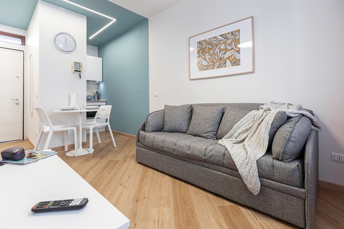 Studio confortable avec terrasse, situé au premier étage d'un petit immeuble dans un quartier calme. L'emplacement est stratégique, à 2 km de la sortie Cavenago Brianza - autoroute A4 et des périphériques de Milan. L’arrêt de bus (vers Gessate - ligne verte du métro pour Milan) est juste en dessous de la maison. De grands parkings gratuits sont disponibles et un supermarché pratique est à quelques pas. Complet avec cuisine équipée, WiFi, smartTV et climatisation