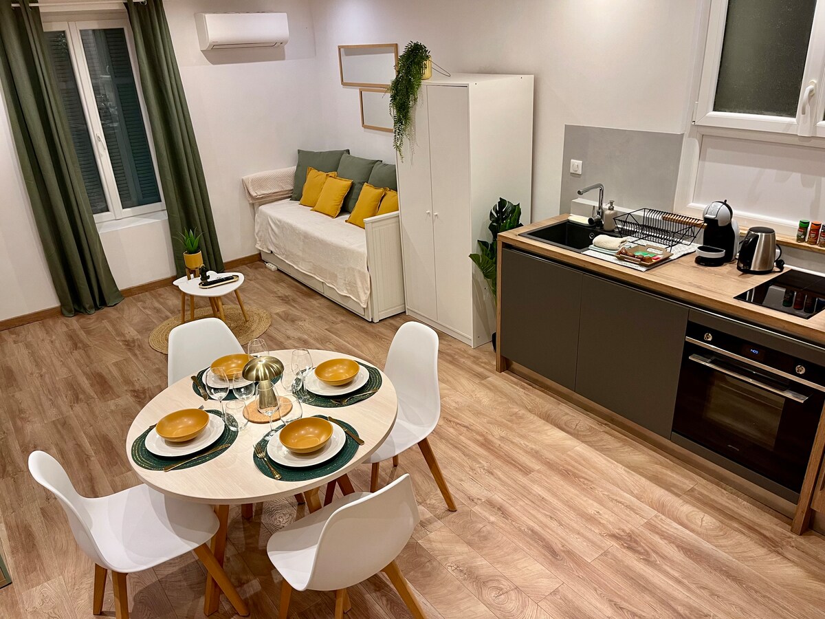 BANDOL - Au coeur du port de bandol, appartement vue Mer avec balcon, WiFi. L'appartement a été entièrement refait avec architecte d'intérieur et prestations haut de gamme. Il se compose d'une vaste pièce ouverte avec cuisine entièrement équipée, grande armoire, coin bureau, lit double en 160cm, balcon le tout avec vue mer. En plein centre accès à la plage, commerces, restaurants, casino ... à pieds ! Garage privé et WiFi. N'attendez pas pour venir visiter notre belle région !