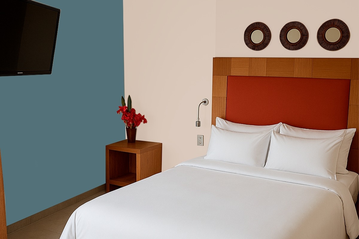 ⭐️¡ LA MEJOR☀️UBICACIÓN Y DESCANSO ! ⭐️ A tan solo 11 minutos de la playa y solo 8 minutos del centro. Estarás reservando nuestra habitación 2 camas dobles. una amplia y cómoda hab diseñada para tu descanso. Reserva sin preocupaciones, ¡Cancelación gratis hasta 1 día antes! 🛏️2 camas dobles muy cómodas para un gran descanso ❄️A/C y WiFi de alta velocidad 📺 Smart TV de 42” con cable y apps de streaming 🌿 Baño privado 🔒 Caja fuerte y frigobar en tu habitación - Secadora de pelo y plancha