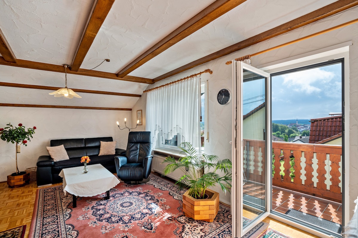 Le tourbillon de montagne Appartement joliment décoré, proche de la nature avec jardin, terrasse (avec vue sur le château fort), douche de jardin et sauna. 5 km du centre de Heppenheim. Superbe vue sur le magnifique jardin de chaque chambre. 5 minutes à pied et vous êtes dans la forêt et les prairies. Sur la terrasse, vous pourrez profiter du coucher de soleil. Pour l'air ambiant idéal, un purificateur d'air avec filtre à charbon actif HEPA est disponible pour éliminer le pollen, les odeurs, les allergènes transportés à l'air, etc.