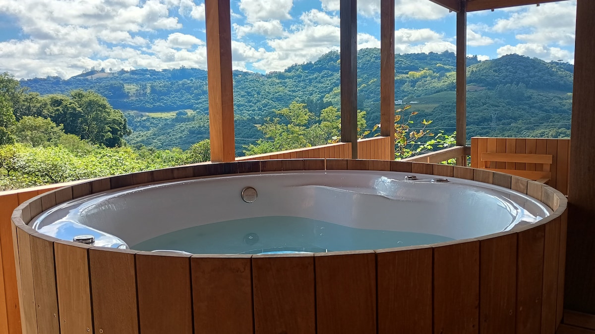 Cabane située dans le charmant Vale dos Vinhedos dans la ville de Bento Gonçalves/RS - en face du vignoble Almaúnica. L'emplacement est parfait pour ceux qui cherchent à passer du temps loin de la vie trépidante de la grande ville et à tirer le meilleur parti des vignobles locaux et de toute la nature qui les entoure. Jacuzzi avec chromothérapie, barbecue, cheminée, cuisine équipée, douche avec chauffage au gaz, eau chaude dans tous les robinets, salle de bain attenante.