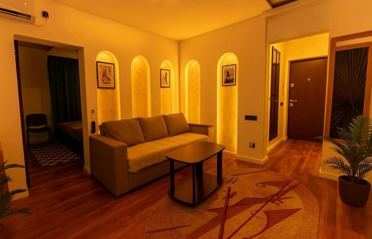 Bienvenue dans notre studio lumineux et moderne situé sur la rue Nicolae Galea à Bucarest, avec des accents verts et blancs frais et de grandes fenêtres qui inondent l'espace de lumière naturelle. Parfait pour un séjour urbain confortable avec une touche de charme inspiré par la nature. Idéal pour un séjour relaxant dans un quartier bien desservi. :)