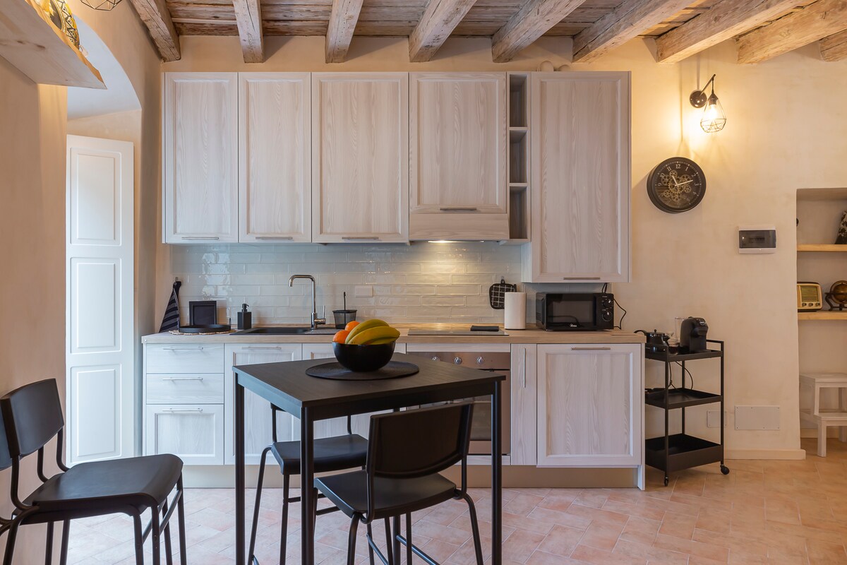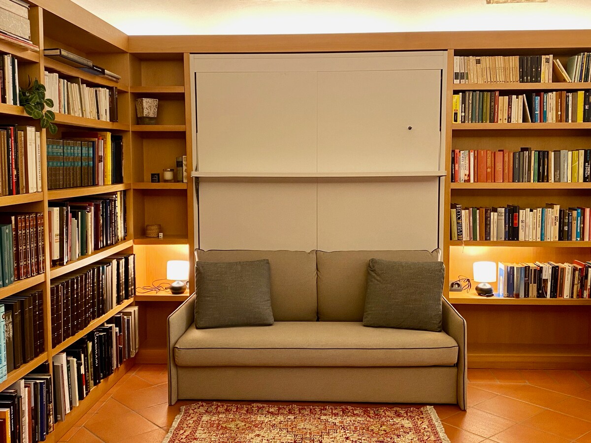 Studio récemment rénové, classique mais moderne au cœur de la vieille ville de Bergame. Meublé et décoré en détail, il dispose d'un lit double et d'un canapé convertible double, d'une cuisine et d'un coin salon, d'une salle de bains privée avec une grande douche. Vue incroyable sur les toits et les collines environnants. Tout le confort moderne, CLIMATISATION, Wi-Fi, Netflix, lave-linge, machine à café, ascenseur... ARRIVÉE après 21h disponible sur demande.