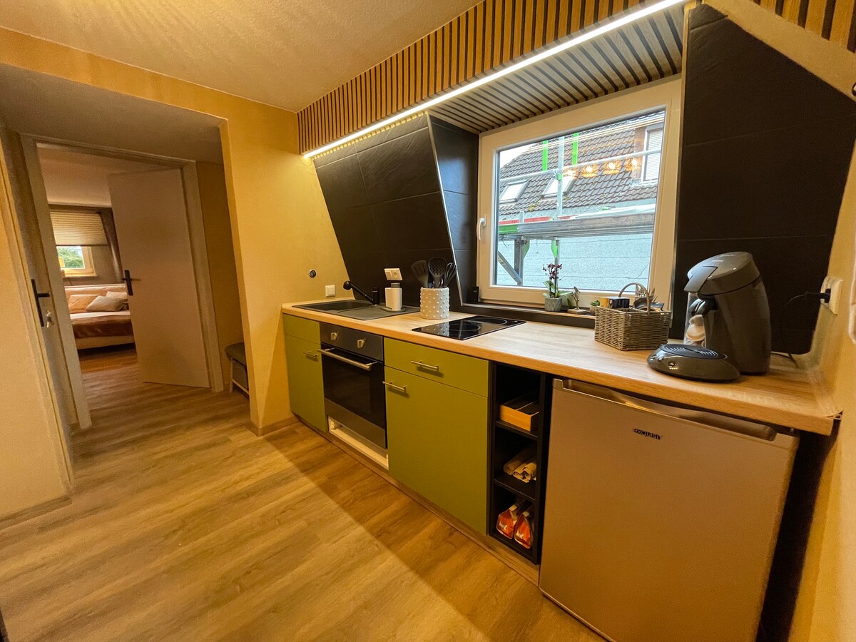 Profitez du bel environnement de ce coin romantique dans la nature. Petit appartement de vacances raffiné pour 2 personnes, tout ce que le cœur d'un vacancier désire. Une entrée séparée et une terrasse privée permettent d'oublier le quotidien en toute tranquillité. L'appartement est entièrement équipé avec salle de bain privée (douche, WC), kitchenette, table à manger, lit double et un petit canapé. Des sièges sont disponibles sur la terrasse et un brasero peut être installé.