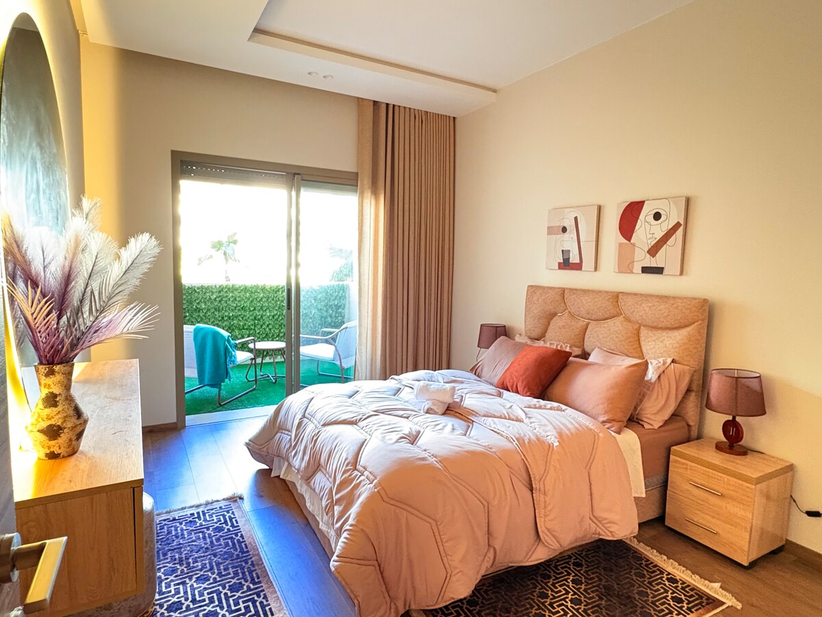 💛 La conciergerie Mi-Haven, vous presente L'Horizon, situé à Nouaceur, à seulement 5 minutes de l’aéroport Mohammed V. Ce logement moderne au sein d’une résidence haut standing avec piscine allie confort et raffinement. Profitez de la terrasse lumineuse avec vue sur les jardins, d’une literie premium et d’une cuisine équipée. Idéal pour escales, déplacements pros ou escapades cosy, chaque instant devient une expérience unique.