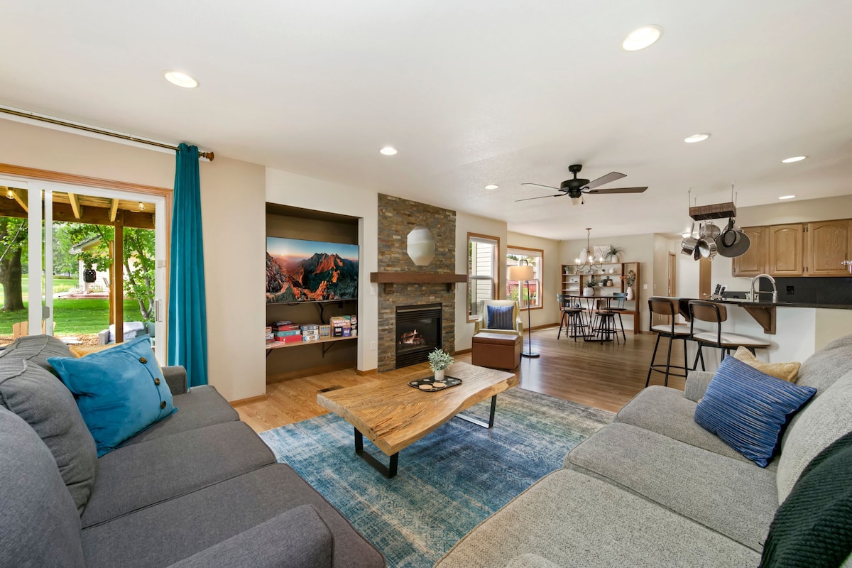 Maison confortable et accueillante offrant une douche à vapeur avec baignoire surdimensionnée, salle de cinéma, lits confortables, café complet et bar à thé, patio couvert avec table de foyer pour 6 personnes, et tant d'équipements pour pouvoir se détendre, se détendre et se détendre ! Notre logement est situé près du cœur de Loveland, ce qui vous permet d'être à proximité de Fort Collins, Greeley, Estes Park et des montagnes tout en étant entouré de nombreux restaurants et boutiques. De nouveaux équipements/friandises sont toujours pris en compte et ajoutés !