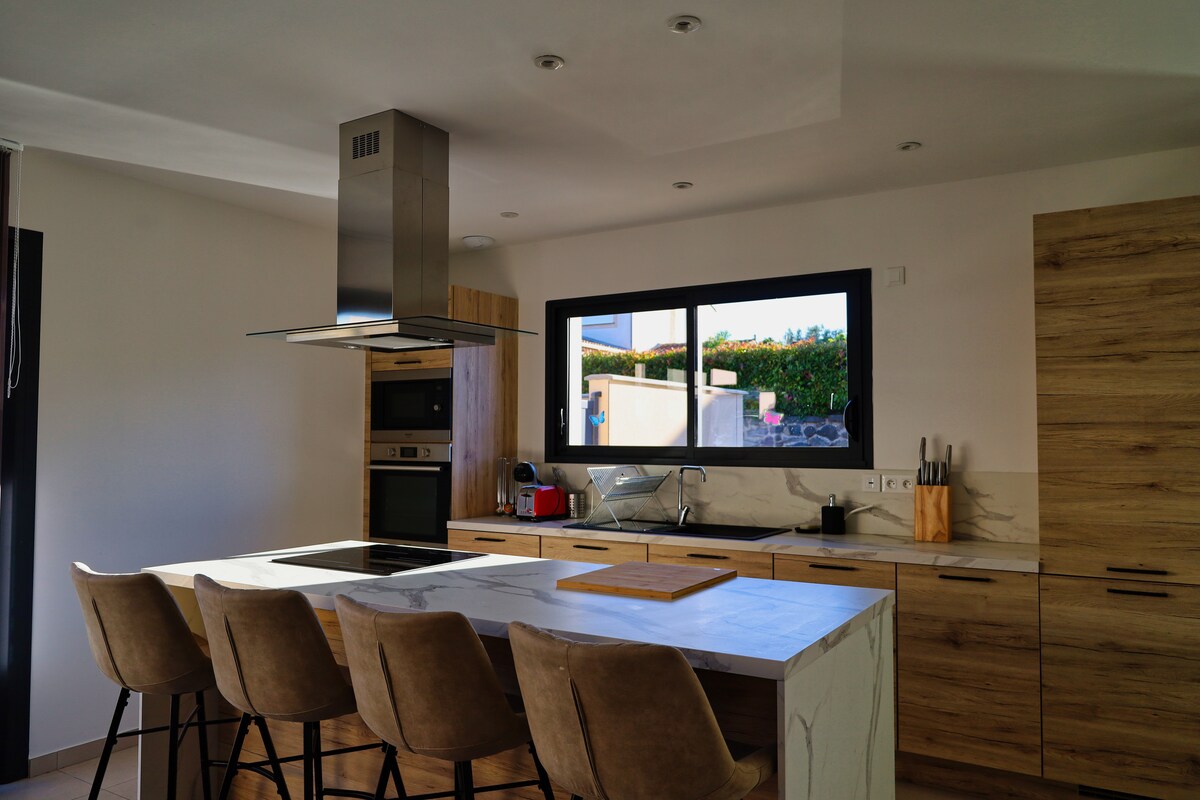 Très belle villa récente de 105 m2 avec 3 chambres et 2 salles de bain dont 1 suite parentale. Les deux autres chambres ont une vue sur la piscine de 6x3m et un accès direct à la terrasse. Grande pièce de vie équipée d’une cuisine américaine et salle à manger / salon. Dans le salon, vous profiterez d’un grand canapé et télévision écran plat de 200cm. Vous accéderez à la terrasse extérieure et à la piscine type balinaise en passant par la grande baie galandage de 5 mètres.