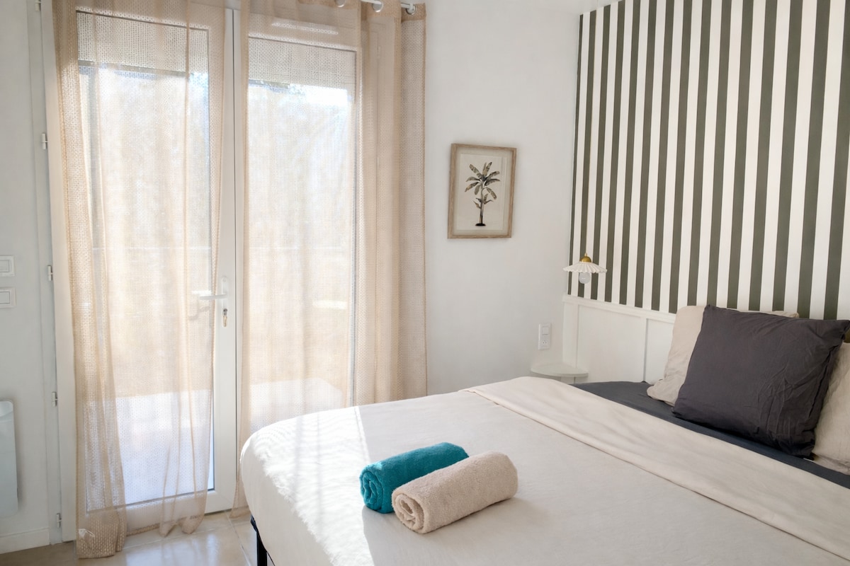 L'appartement "Le Jaune Vendée" est un T2 tout juste rénové avec terrasse au 1er étage d'un petit immeuble de 2 étages, très fonctionnel et équipé jusque dans les moindres détails. Chambre séparée et isolée de l exterieur avec des rideaux black out. Coté cour et très calme pour un meilleur confort de sommeil, sans oublier le lit "king size". Idéalement placé, avec toutes les commodités à proximité et un parking gratuit devant l'immeuble. Self Check in possible pour un maximum de flexibilité