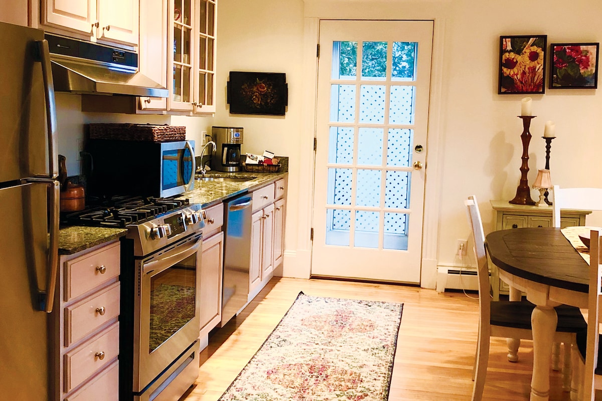 Un logement de plain-pied aux détails uniques dans une maison de 2 logements comprenant une grande cuisine/salle à manger, un salon et une véranda privée confortable. Chambre Queen Size et couchage supplémentaire pour 2 avec un matelas pneumatique de luxe. Cet espace est parfait pour les couples, les familles avec de jeunes enfants ou une personne seule. Un seul chien autorisé, pas de chats. Ce logement est situé au rez-de-chaussée d'une maison bi-familiale. Parfois, vous pouvez entendre des pas à l'étage. VEUILLEZ noter que le stationnement sur place est très serré, petites voitures et SUV compactes uniquement.