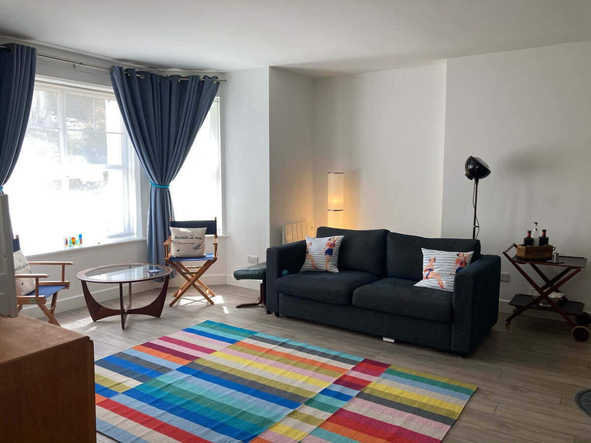 Ce logement spacieux offre un séjour détente pour toute la famille. Appartement de 2 chambres entièrement rénové au 3e étage, idéal pour profiter de vacances reposantes en bord de mer. À 15 min à pied de la gare, à 2 min de la plage et du De La Warr Pavilion avec le parc Egerton juste devant la porte !