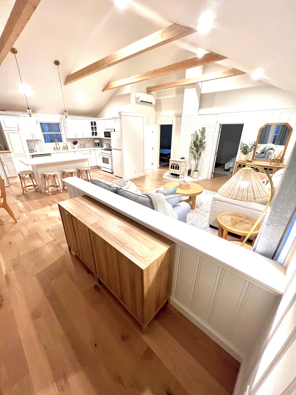 Le Lower Village Lofts *North* est un grand studio récemment rénové situé au cœur de l'action, à quelques pas de Dock Square (centre-ville de Kennebunkport) et à 1/2 mile de la plage ! Ce logement dispose d'une toute nouvelle cuisine entièrement équipée, d'un mobilier design et haut de gamme flambant neuf, et d'une cloison de séparation sur mesure avec un foyer électrique, une armoire et une télévision connectée de 50 pouces. La chambre dispose d'un nouveau lit King Size avec une literie de luxe, des stores occultants et une télévision intelligente supplémentaire.
