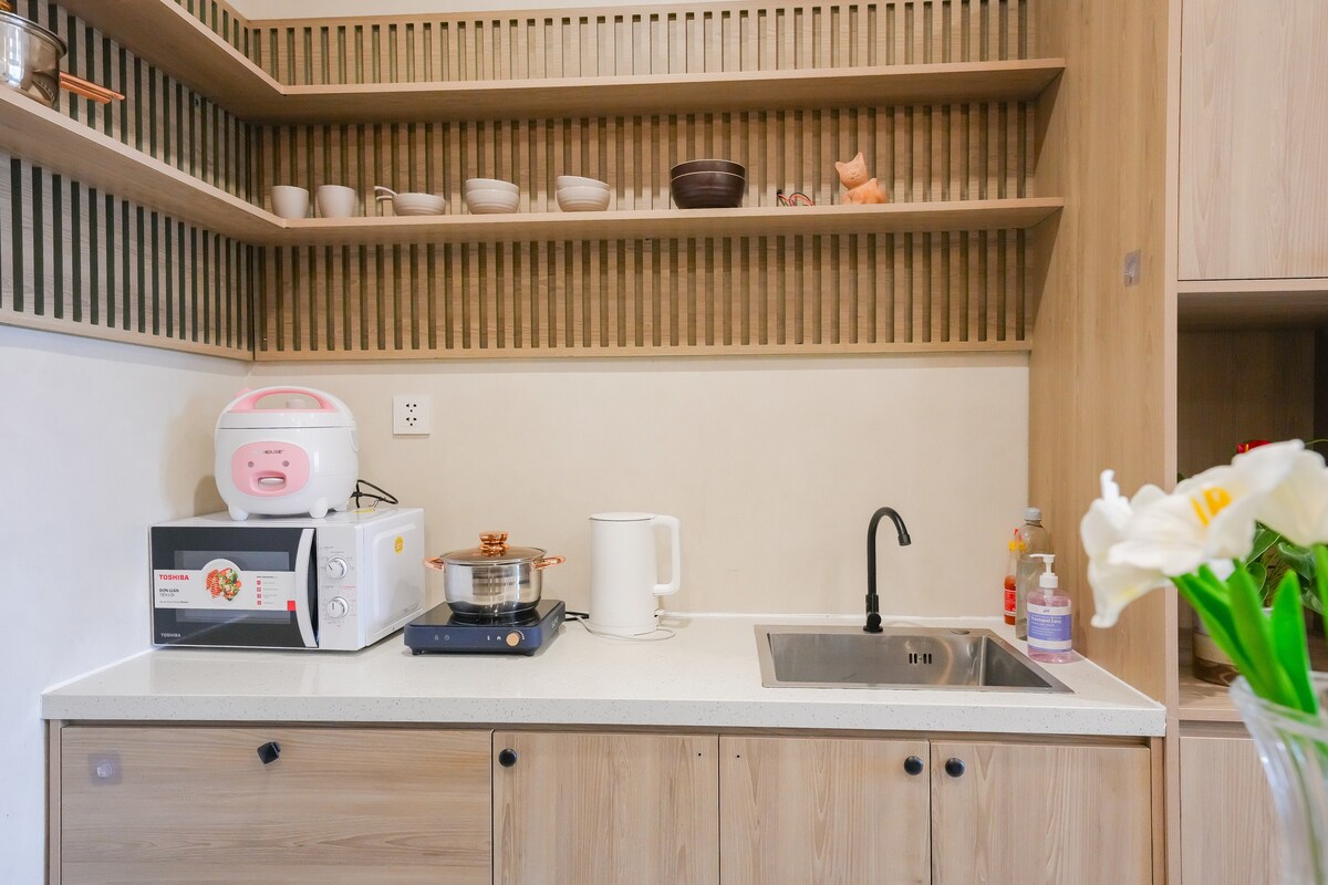 Bonjour de 🍃Ben's Homes🍃 Notre appartement est heureux d'accueillir de belles journées d'été. Studio TV 55” netflix et détente. Appartement avec vue éblouissante sur le coucher du soleil de 8p, vue intérieure sur la piscine. Cuisine prête, réfrigérateur, huile essentielle naturelle. Près du Vicom Mega Mall, du CGV et aussi du Vin Wonder. Prêt à louer un forfait de 3 heures. Nous sommes également prêts à prêter des vélos pour visiter Vinhomes. L'appartement avec un ton frais et paisible, un canapé moelleux, des arbres verts décoratifs et beaucoup de livres sont disponibles pour votre expérience.🍃
