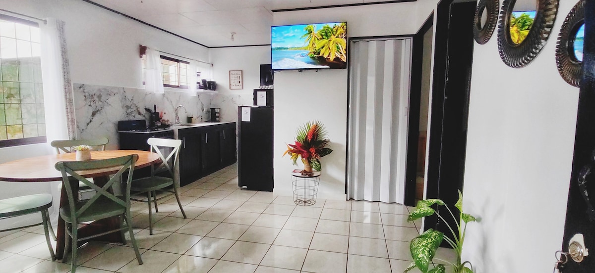 Avez-vous déjà rêvé de vous réveiller devant de belles scènes de faune juste devant votre fenêtre ? Si c'est le cas, vous êtes à la bonne place !... Notre maison entièrement équipée offre tout ce dont vous avez besoin pour une escapade relaxante à Manuel Antonio, avec des possibilités privilégiées d'observer la faune comme les singes et les oiseaux. Situé au rez-de-chaussée avec accès routier pavé. À quelques minutes à pied, vous trouverez des bars, des boutiques, des restaurants et une vue panoramique sur l'océan. La plage cachée de La Macha est à seulement 0,8 miles et Quepos se trouve à seulement 6 pâtés de maisons.