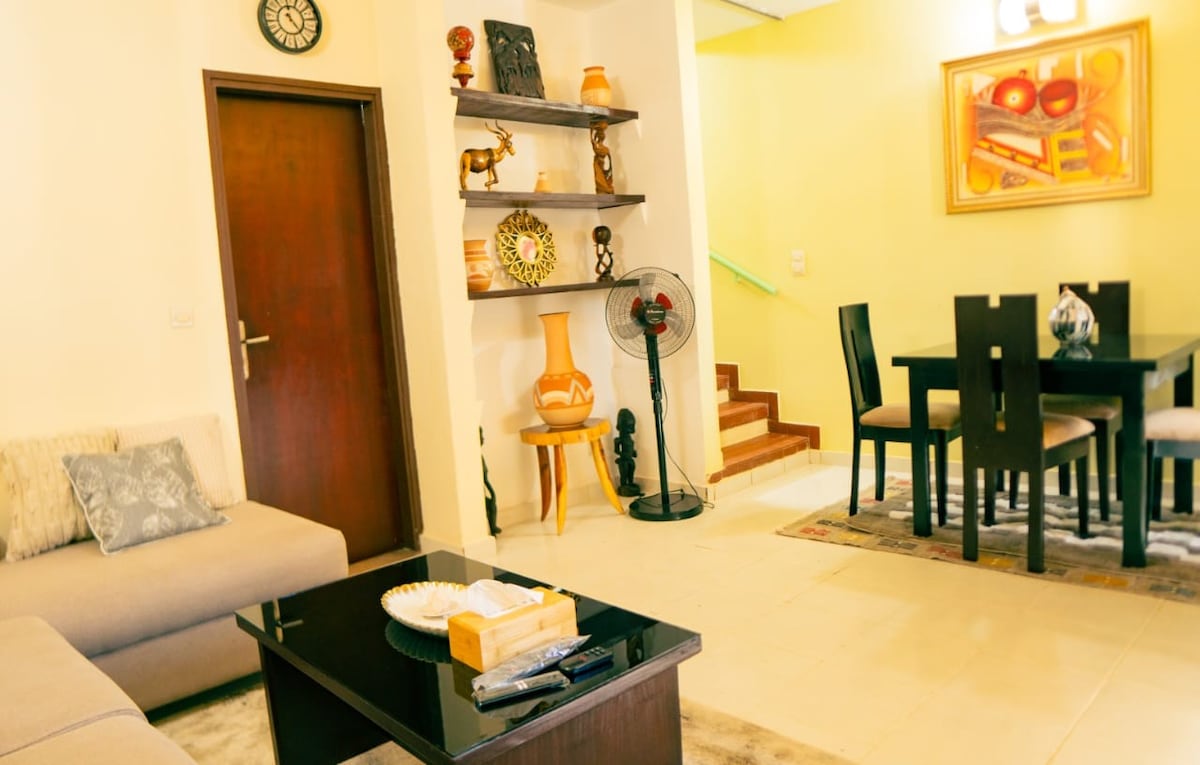 🤩 Votre maison préféré à Abidjan 🏡 Appartement confortable et bien décoré, une chambre + salle de douche privée, un salon, deux balcons, une cuisine bien équipée, un espace buanderie, des toilettes visiteurs 🌳 La verdure et la vue sur la ville et le lac et la terrasse sur le toit, dans un quartier calme et sûr. 🏪 Restaurants, cafés, centres commerciaux et plus encore à proximité. 💫 Nos hôtes l’adorent ! Ils reviennent souvent ou prolongent leur séjour. ✅ Tarif négociable.