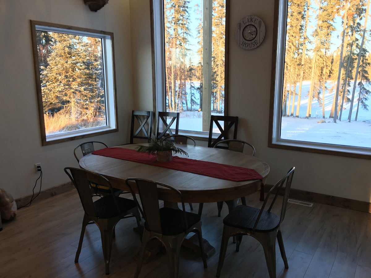 Bienvenue dans notre chalet isolé situé sur 1,5 acres entouré par la forêt boréale au lac Chitek. Il y a 3 chambres, 2 salles de bain, un canapé-lit et un futon. Vous avez un foyer extérieur privé et une terrasse couverte avec un barbecue. Stationnement pour camping-car, 30 ampères, 35 $/nuit. Le lac offre une pêche fantastique, beaucoup d'espace pour les sports nautiques, ou simplement pour trouver une plage isolée pour se détendre. Il y a un grand parking pour vos véhicules, bateaux ou remorques quad et traîneaux avec le système de sentiers juste devant votre porte d'entrée !