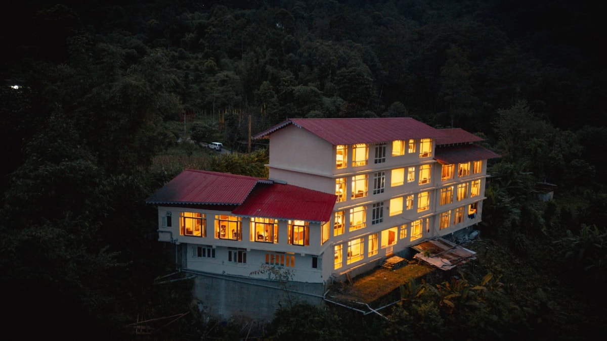 Trois chambres, deux avec salle de bain attenante et une avec salle de bain partagée. Sept voyageurs. À Yuksom, la 1ère capitale du Sikkim. Notre logement est votre maison loin de chez vous, niché dans une forêt offrant une atmosphère paisible loin des bruits de la vie. Vous apprécierez la lumière du soleil, la brise, le bruit des oiseaux, la cuisine, le trek Dzongri (commence ici) et les sites touristiques locaux. Nous accueillons les séjours, le travail depuis les collines et les escapades en famille/week-end.