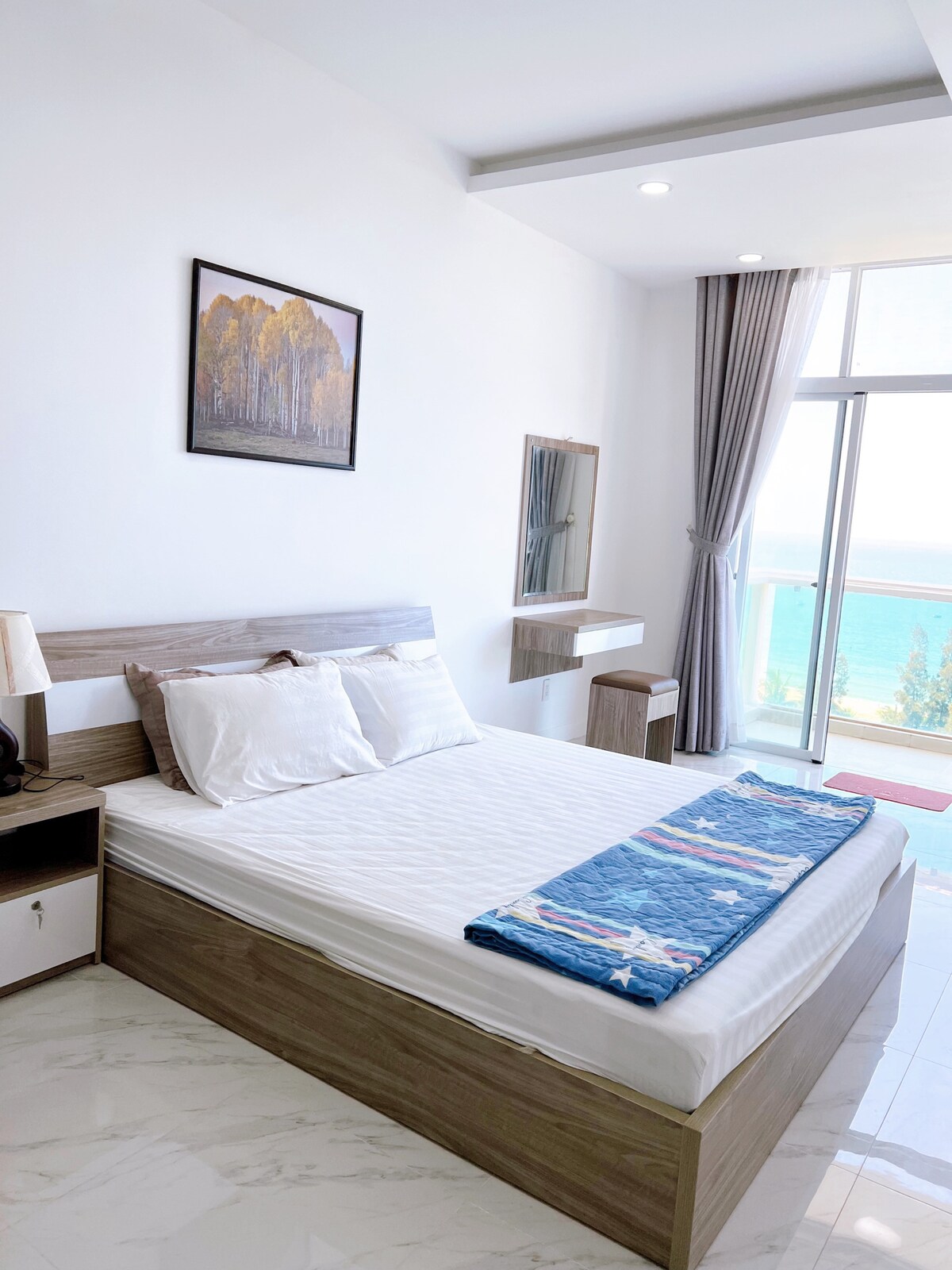 Studio de 32 m ² avec mobilier de luxe avec installations complètes, y compris : * 1 grand lit 1m8 literie complète et literie. * 1 toilette et salle de bain moderne sont fournis avec suffisamment de serviettes, shampoing, gel douche, sèche-cheveux… * 1 étagère de kitchenette équipée d'un micro-ondes, d'une chaudière, d'un mini-réfrigérateur ( pas de support de cuisson à l'appartement, ne peut réchauffer que les aliments) * Placard suspendu, bureau de travail, télévision, wifi La grande fenêtre, la vue sur la mer est très belle