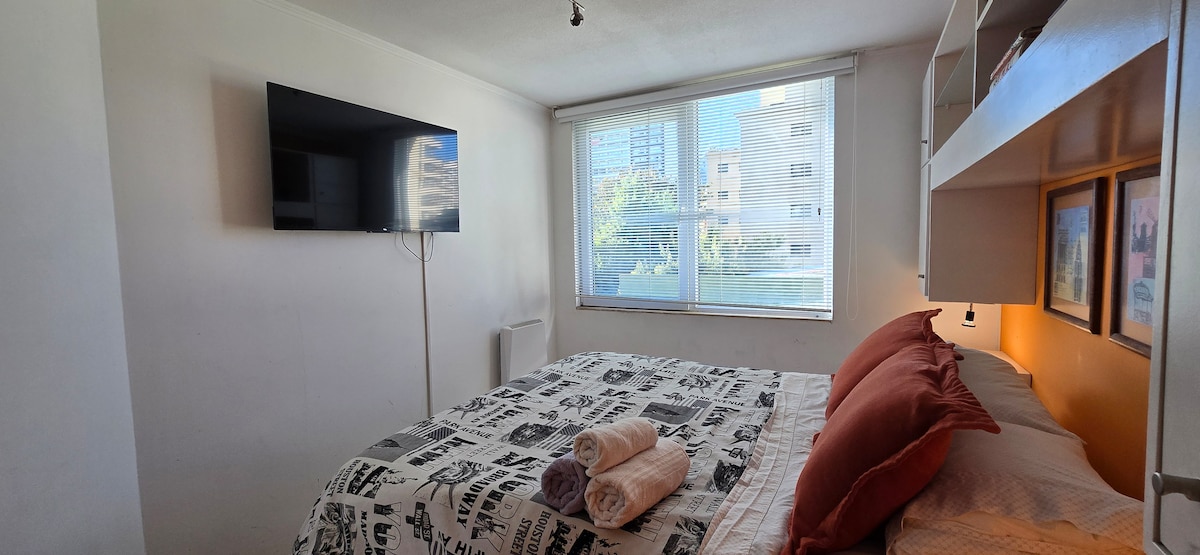 À 5 minutes de l'aéroport, à 10 minutes de Talcahuano, à 15 minutes de Concepción. Chambre indépendante, équipée d'une télévision, d'un lave-vaisselle, d'une salle de bain, du wifi, d'un micro-ondes, d'un lit 2 places, d'un réfrigérateur, d'un veilleur et d'une entrée indépendante et d'un parking.