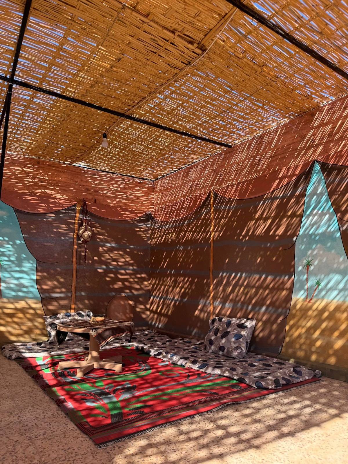 Ici, vous profitez du calme sans être isolés : la mosquée est à deux pas et tout reste facilement accessible. Le logement se situe au premier étage d’une maison familiale, décoré dans un style berbère traditionnel avec tout le confort nécessaire et le petit-déjeuner inclus. Vous disposez d’un espace privé : grande chambre avec coin salon, salle de bain, toilettes et accès direct à la terrasse.