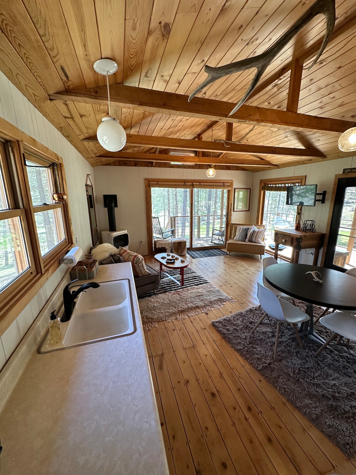 Une cabane rustique unique et isolée nichée sur 10 acres de forêt de pins Ponderosa. Profitez du café du matin sur la terrasse ensoleillée et spacieuse, des pique-niques l'après-midi au ruisseau, d'un feu de bois confortable le soir et d'un ciel plein d'étoiles la nuit. À seulement 12 minutes de la bonne nourriture et des cafés de Spearfish ; à 20 minutes de Deadwood. Le chalet est idéal pour les couples, les familles et les groupes d'amis proches. Notez que l'intimité est limitée ; il n'y a pas de chambres avec des portes que vous pouvez fermer.