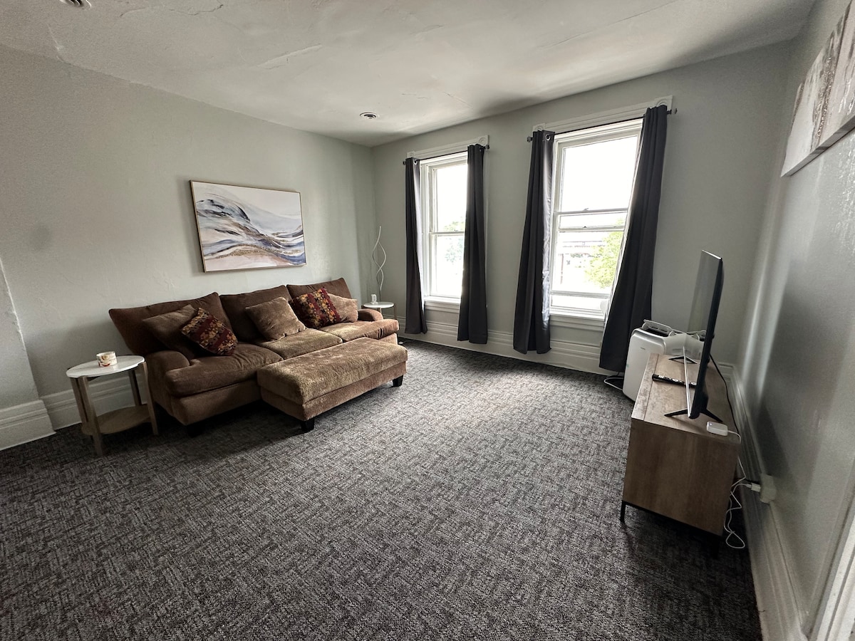 Appartement confortable à l'étage, à 1/2 mile du village d'East Davenport. C'est un endroit minuscule, mais parfait pour un séjour en week-end ou un voyage d'affaires. Chauffage radiant et une belle vue sur le quartier et parfois un aperçu de la rivière. Roku et Disney+ gratuits ! (pas de chaînes locales) Wifi Ustensiles de cuisine, ustensiles et café et thé gratuits avec des tasses à emporter pour les matins. LGBTQ+ friendly.🏳️🌈 Propriétaire occupé avec de jeunes enfants bruyants dans le reste de la maison. Pas d'espace partagé, nous partageons les murs.