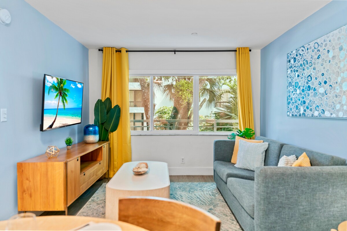 Magnifique appartement de 1 chambre situé directement sur l'intracoastal avec une piscine chauffée. Ce logement N'A PAS de vue sur l'eau depuis l'appartement, MAIS offre une vue incroyable sur la voie navigable intracôtière depuis le patio/la piscine. Admirez les yachts naviguer tout en profitant des couchers de soleil incroyables depuis le quai. Travaillez à domicile, 1 pâté de maisons de la plage ! Calme et paisible. À distance de marche de nombreux magasins et équipements locaux ! Parfait pour les couples, jeunes familles et groupes d'amis voyageant ensemble.
