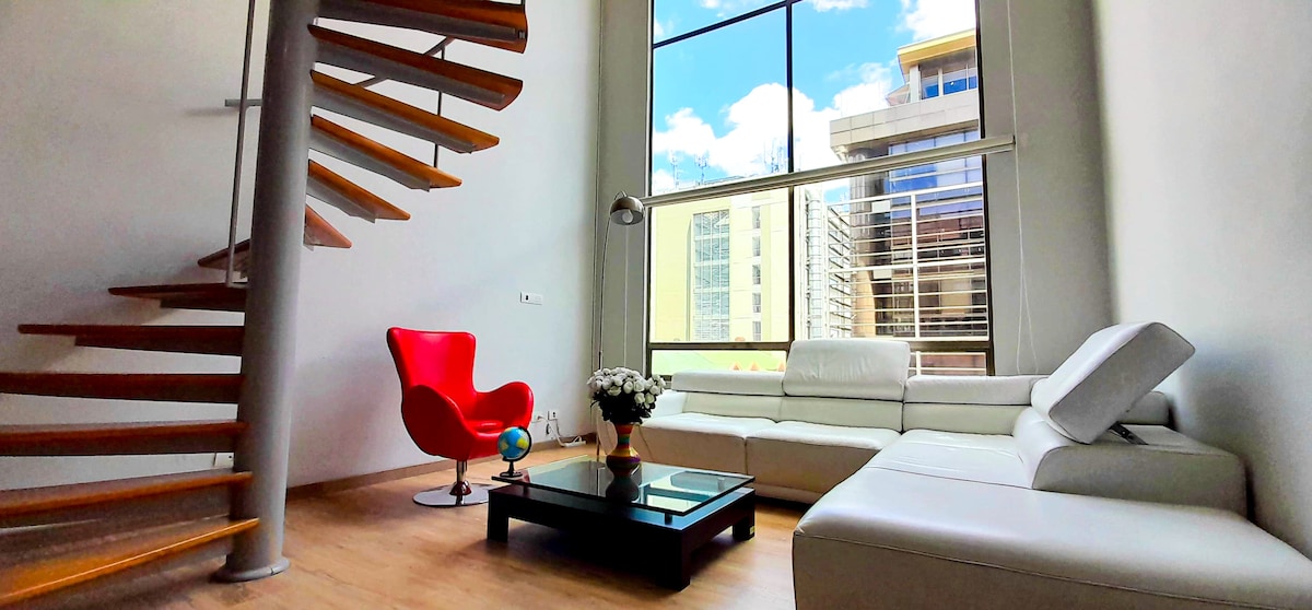 Enjoy a romantic and exclusive stay in Chicó, just moments from Park 93 and Zona T. Unwind in your private jacuzzi, rest on the plush King bed, and stream your favorites on the SONY 55” Smart TV with Netflix/YouTube. The loft offers a fully equipped kitchen, fast 500 MB WiFi, two elegant bathrooms, a modern, stylish atmosphere perfect for couples or business travelers seeking comfort and privacy. Book now and treat yourself to a luxurious romantic experience in Chicó with a private jacuzzi.🥂
