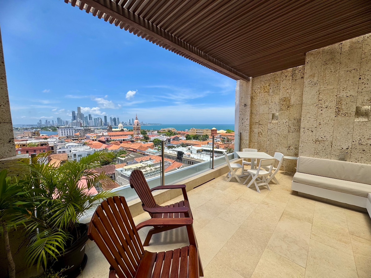 Enjoy a truly unique experience in this elegant 2-bedroom apartment, located in the historic and emblematic Edificio Ganem. Perfectly situated in the heart of Cartagena, its location is simply unbeatable-- in the heart of the Old Town and surrounded by the city’s best restaurants, cafés, and boutiques. What makes this place truly special is its unmatched view: from the windows, you can admire the colonial charm of the Old Town, with the endless blue of Bocagrande in the background.