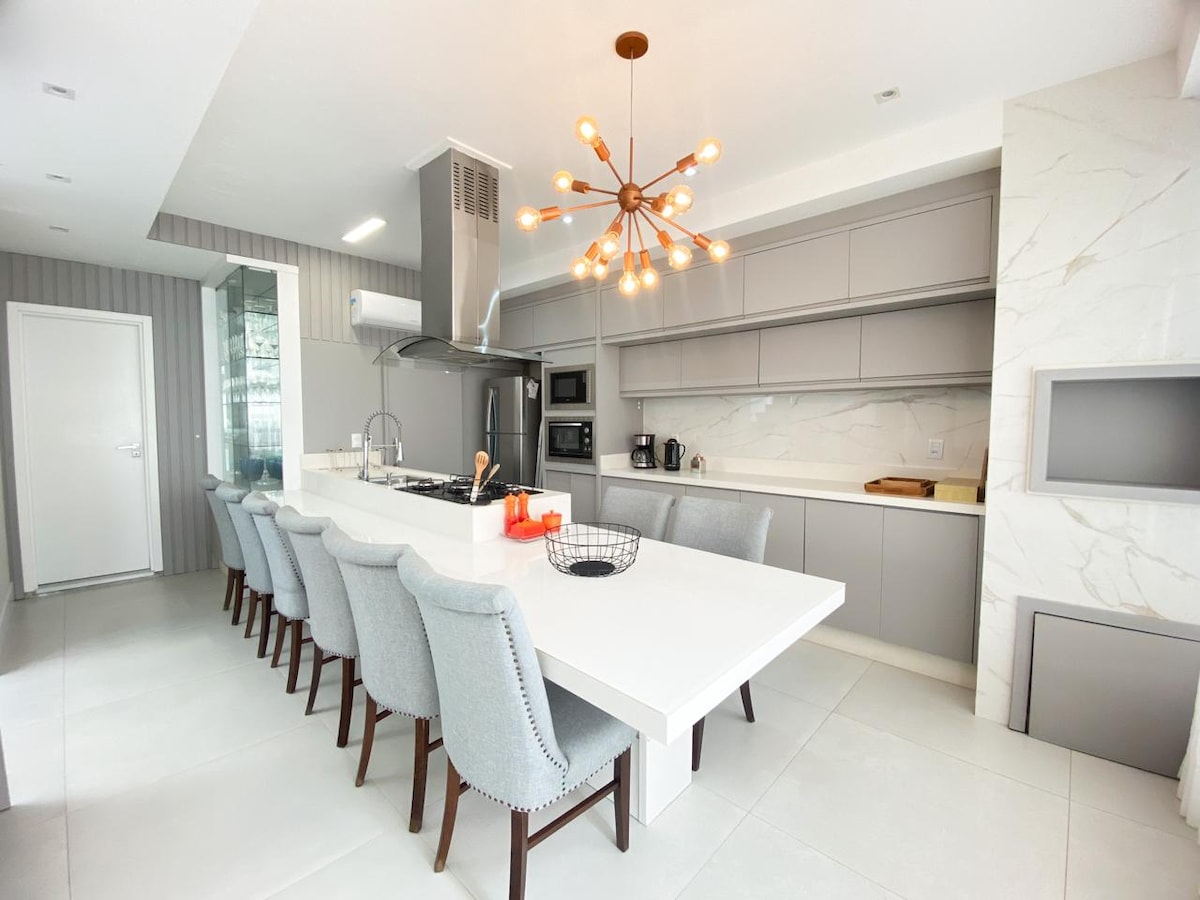 Porto Belo Frente Mar : une expérience à pied dans le sable Profitez de la tranquillité de la plage centrale de Porto Belo dans une maison parfaite pour les familles et les enfants. Avec 5 suites (un maître avec ofurô), spa en bord de mer, cuisine équipée, Wi-Fi et climatisation partagée dans toutes les suites, offre un maximum de confort. L'espace extérieur dispose d'un barbecue en bord de mer et d'un patio pour 4 voitures. Excellent emplacement, à proximité des marchés, des boulangeries et des cafés. Vivez des moments inoubliables en bord de mer !
