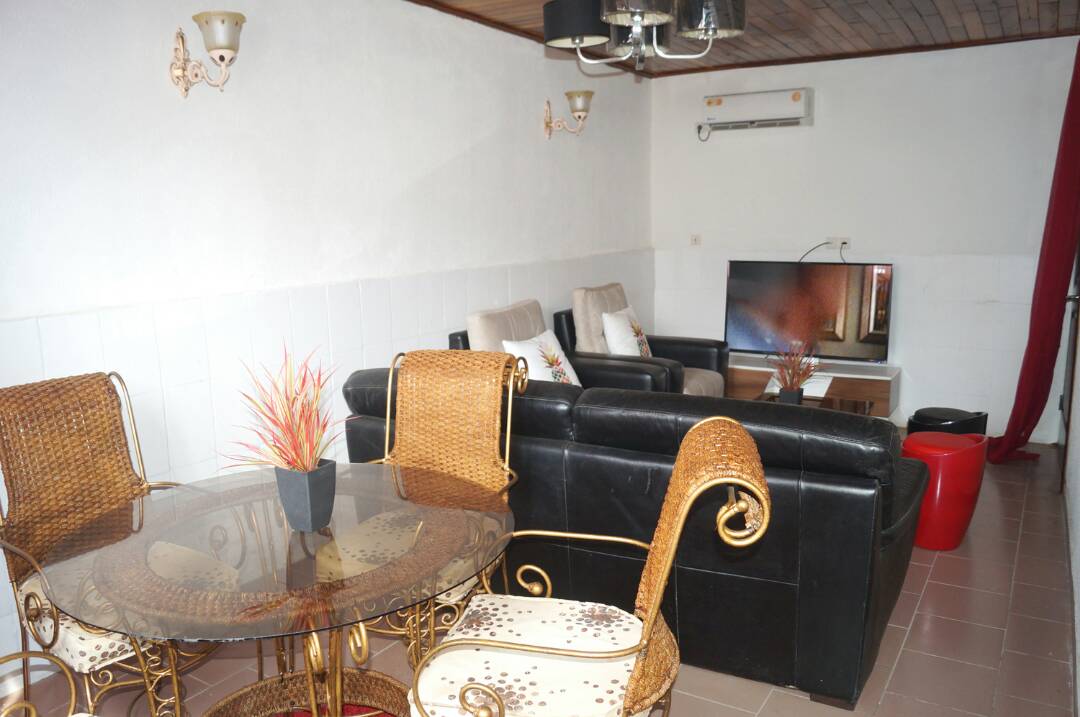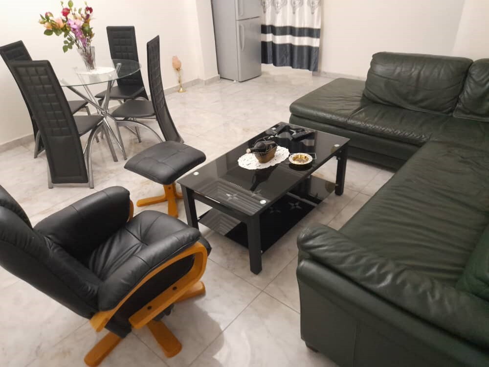 Découvrez le charme moderne de ce nouveau duplex entièrement meublé. Votre résidence bénéficie d'un environnement socio-économique privilégié avec les marchés, banques, boulangerie à 10 mins. Le logement est sécurisé et à 15 mins du centre-ville. L'appartement en duplex est constitué de 2 chambres, 2 Sdb, 1 salon et 1 cuisine. Appartement climatisé avec WiFi. Forage et groupe électrogène inclus en cas de coupure