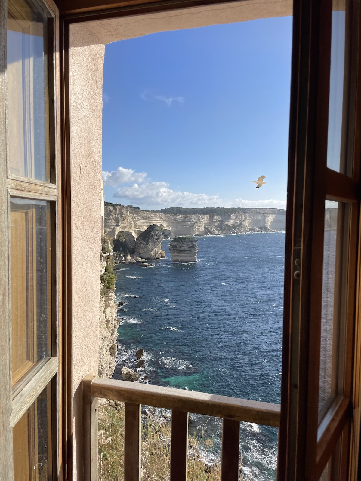18 rue doria 36 m2 belle vue mer sur les bouches de BONIFACIO baies vitrées , long balcon etroit appartement ancien rénové,ne vous attendez pas a un lieu asseptisé . - ETE boulangerie supérettes café restaurant boutiques -HIVER essentiel vital draps- serviettes- torchon-essuie main fournis demandez Draps plage bibliotheque a dispo. 5étage sans ascenseur petites valises ville vivante , bruyante jour et nuit l'ete