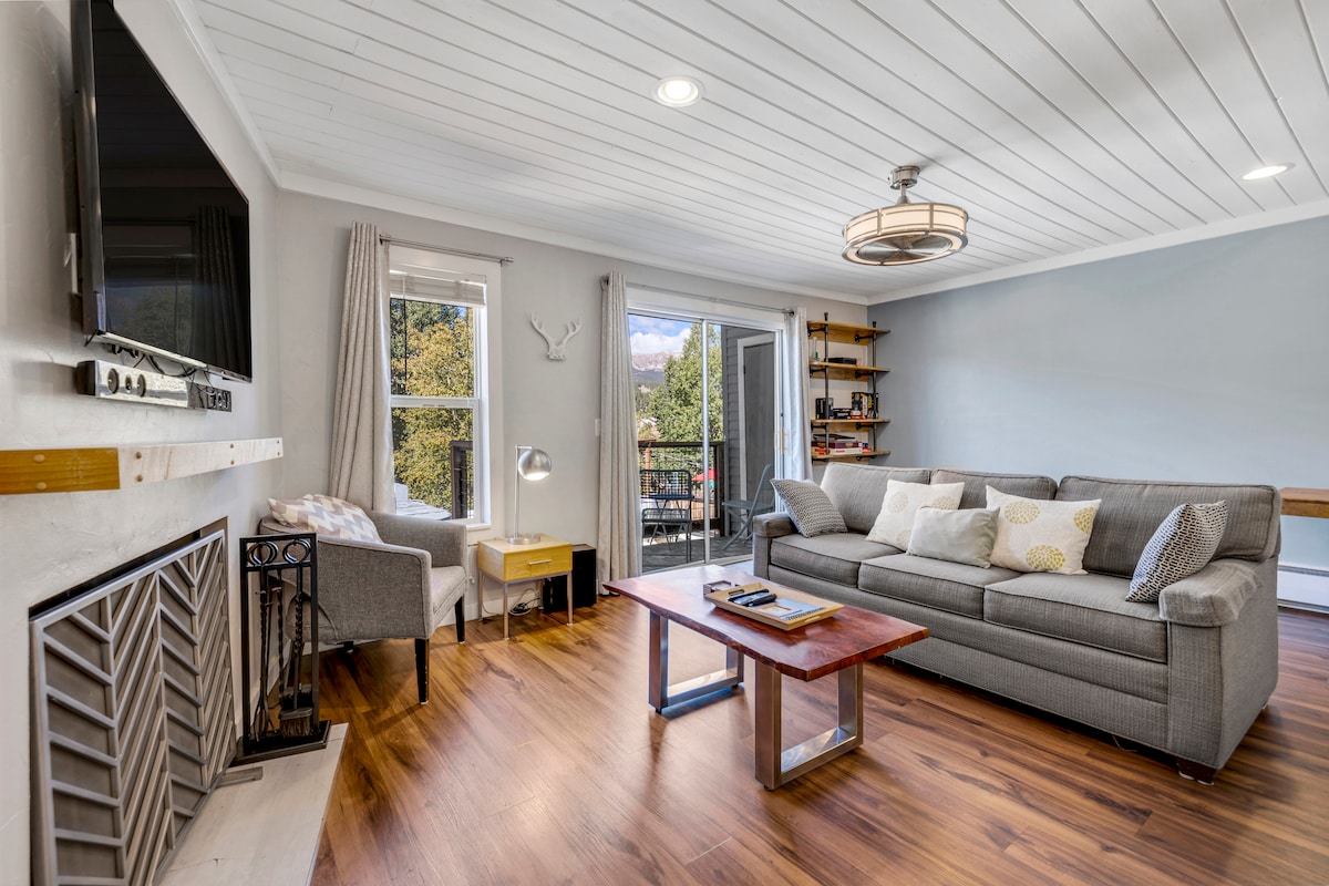 REMARQUE : Complexe aquatique fermé du 27 avril à la mi-mai 2026 Arrivée anticipée/départ tardif non disponible. Détendez-vous dans cet espace calme et élégant. Notre appartement chaleureux et accueillant est niché dans un endroit calme mais pratique très proche des remontées mécaniques et de la ville. Confortable jusqu'à la cheminée à gaz, détendez-vous sur la terrasse couverte, chaises Adirondak avec café ou cocktail. Utilisez les peignoirs fournis pour vous promener facilement jusqu'à la piscine et les jacuzzis après une journée de ski ou de randonnée. Le luxe de la montagne n'est qu'à un clic !