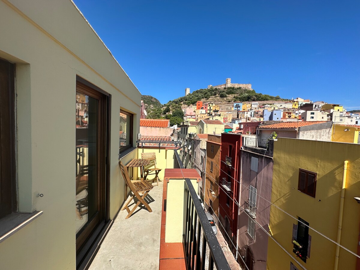 Notre charmant appartement sur le toit est niché à seulement quelques rues du Castello du XIIIe siècle surplombant cette ville médiévale. À deux pas du centre de Bosa t dans une rue paisible et sans circulation, cet appartement offre une vue imprenable sur la ville, le fleuve et la vallée. Sirotez un café du matin pendant que vous respirez l'odeur de l'air frais de la campagne et écoutez les cloches des moutons qui tinrent. Préparez vos chaussures les plus confortables pour explorer les rues pavées. Draps et serviettes en coton inclus.