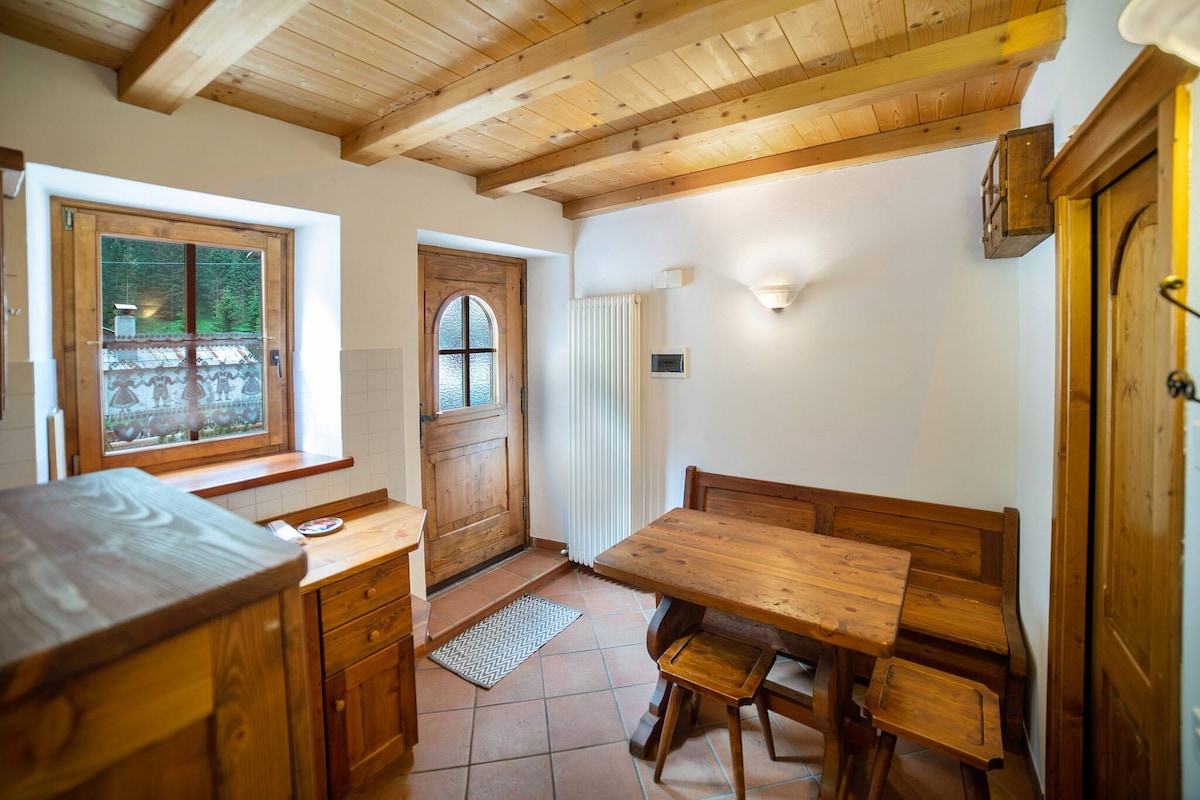 Grand appartement au deuxième étage d'une villa à 1 500 m d'altitude avec vue spectaculaire sur les Dolomites, adapté aux grands groupes, jusqu'à 11 personnes. Pour les groupes jusqu'à 7 personnes, j'offre 2 chambres avec linge de maison inclus, cuisine avec coin repas complet avec vaisselle, salle de bain avec douche, balcon panoramique, buanderie, parking et wifi. La maison est située sur la route qui mène au refuge Venezia sous le mont Pelmo au sommet de 3 168 m ; par temps clair, vous pouvez voir la lagune de Venise.