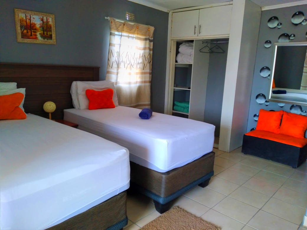 Les appartements sont idéaux pour les familles itinérantes qui veulent explorer le delta de l'Okavango et Savuti ! Il est situé à proximité du centre commercial Choppies (300 m) et au bord de la route où prendre un taxi/taxi est à seulement 60 m. Équipé d'une CONNEXION WI-FI haut débit et d'un DSTv, il est idéal pour les entreprises en voyage et une cachette contre le bruit. La piscine et d'autres équipements tels que le braai/barbecue seront bientôt ajoutés.