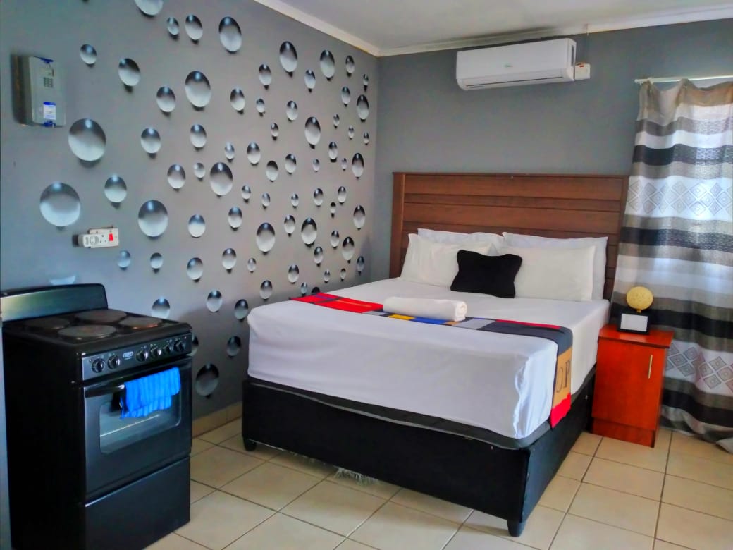 Appartements indépendants entièrement meublés sécurisés avec balcon et parking gratuit. À moins de 8 minutes en voiture du centre commercial CBD, Masa Square & Airport Junction. À 3 minutes de l'hôpital privé Sidilega, des universités Limkokwing & Baisago et à 10 minutes de l'aéroport SSK. Ménage disponible, Wi-Fi illimité GRATUIT et TÉLÉVISION NUMÉRIQUE. Canapé-lit et navette aéroport en option.
