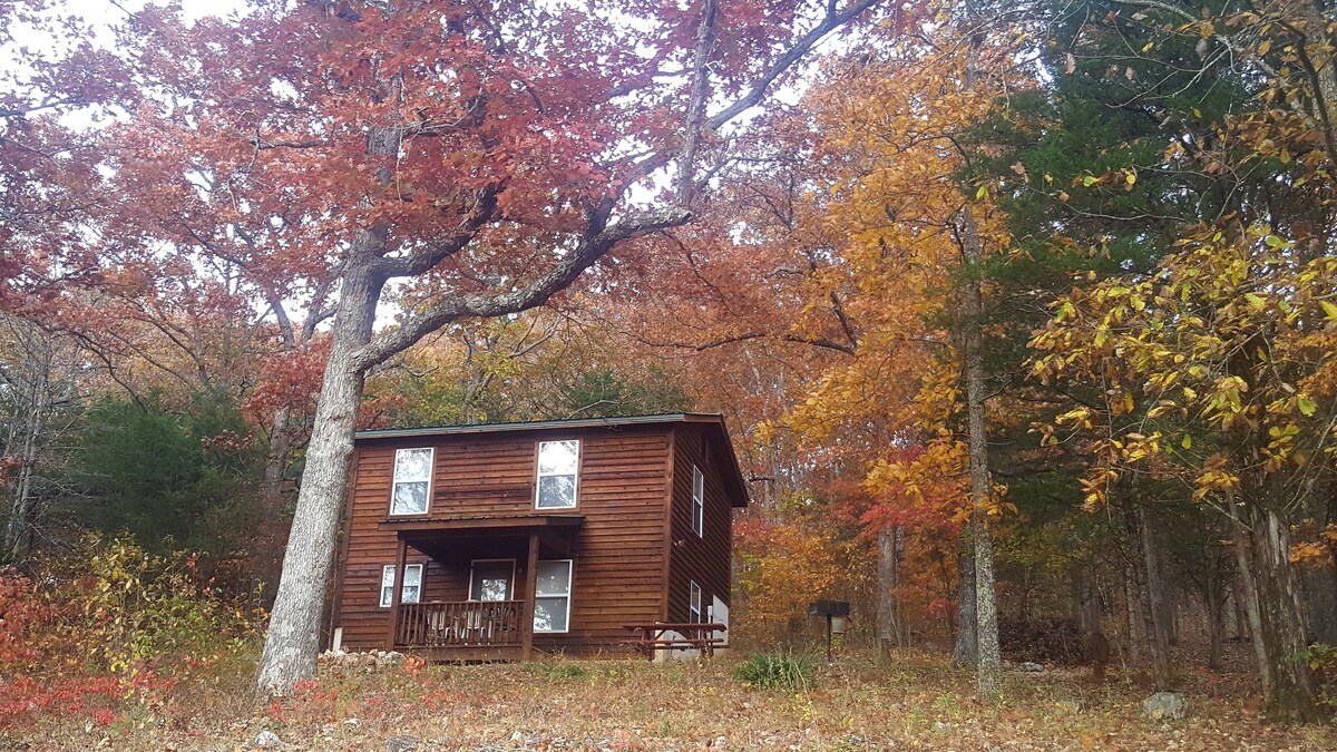 Maison de style cabane adjacente à la forêt nationale de Mark Twain. Ce chalet de 5 voyageurs a été récemment rénové avec tous les équipements modernes. Prenez 3 minutes à pied pour rejoindre le magnifique lac Spring. Le lac est accessible à tous les invités et offre une excellente pêche, baignade et kayak. Vous aimez les chevaux? Nous offrons maintenant l'équitation; plus de 20 miles de sentiers à explorer! Si vous avez oublié quelque chose à la maison, passez dans notre petit magasin de campagne, nous pourrions l'avoir !