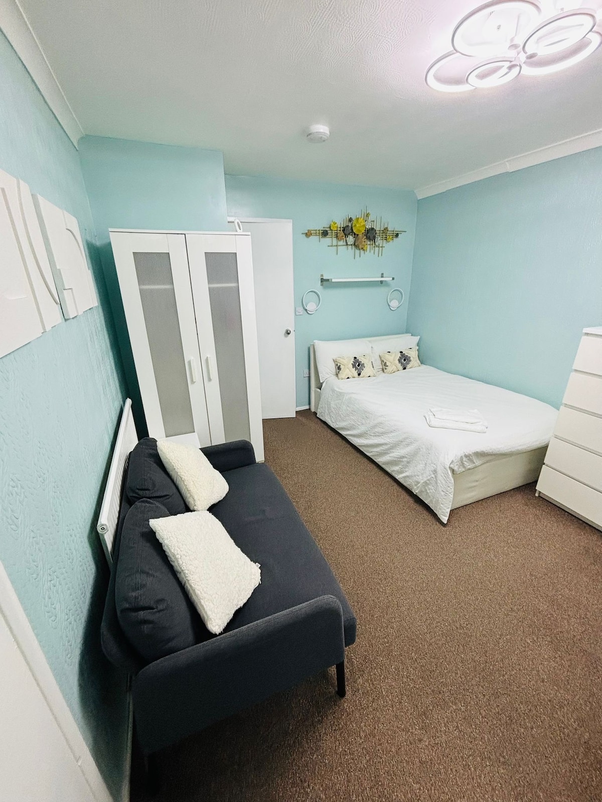 Experience luxury in a newly renovated private self-contained studio apartment in Harborne, near QE Hospital, perfect for solo travellers or couples. Inside Studio: • Double bed with a cosy sitting area • Dedicated workspace • TV with Netflix and high-speed internet • Fully equipped kitchen with sink • Private en-suite bathroom for your comfort Guests also have access to a newly renovated shared kitchen equipped with an oven, hob, dishwasher, and washer/dryer for added convenience.