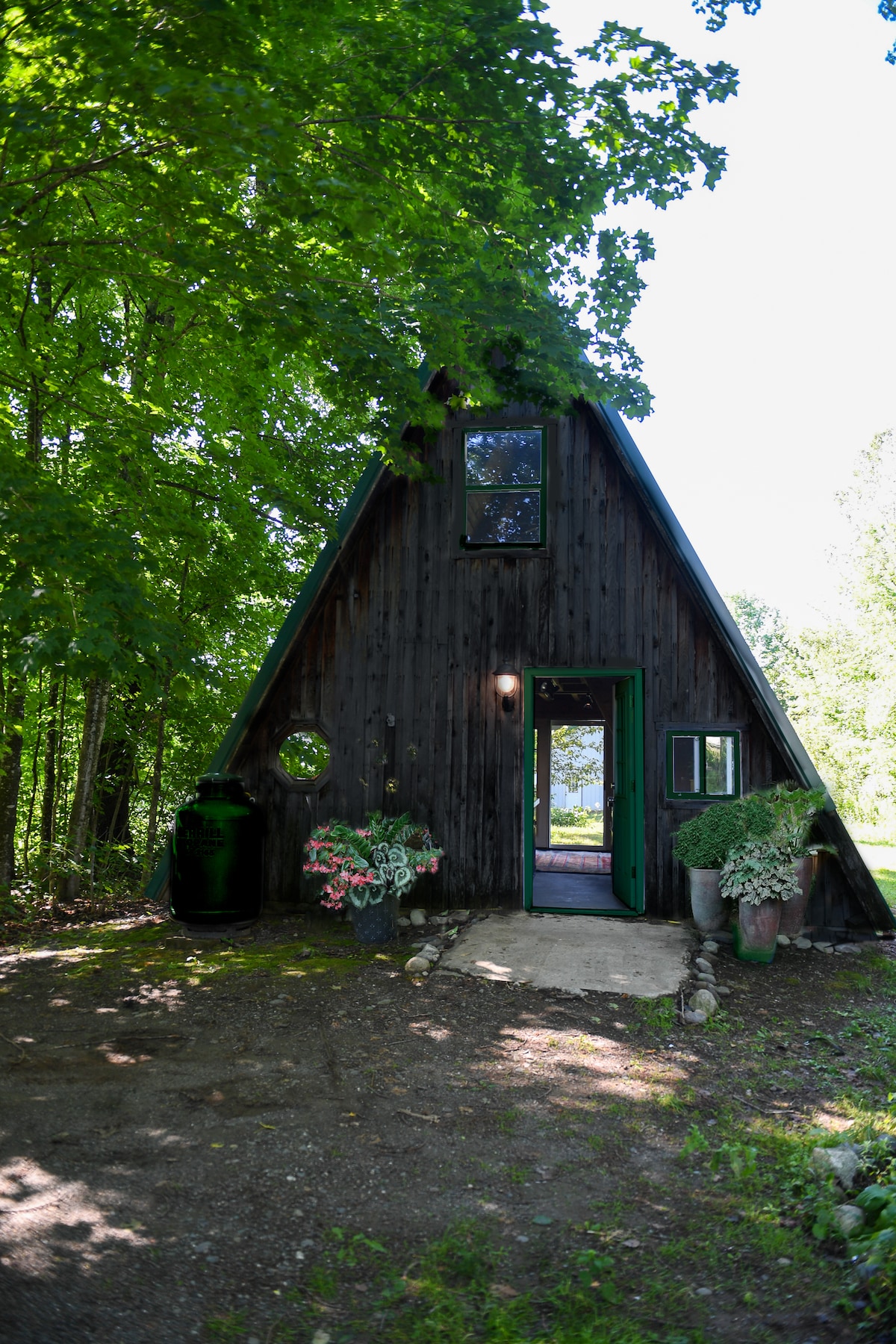 Détendez-vous dans ce logement unique et tranquille. Faites une randonnée sur l'un des sentiers à l'arrière, ou nagez dans l'eau claire et fraîche de l'étang alimenté par la source à côté du porche arrière. Installez-vous confortablement au coin du feu avec un bon livre pendant une tempête, ou mouillez une ligne par une matinée claire sur les marches arrière et attrapez le dîner ! Tout est dans une propriété de chalet confortable pour s'évader de tout. À seulement quelques kilomètres de Dover-Foxcroft ou du lac Sebec. Assez loin pour s'évader, mais assez proche des commodités et des sites touristiques.
