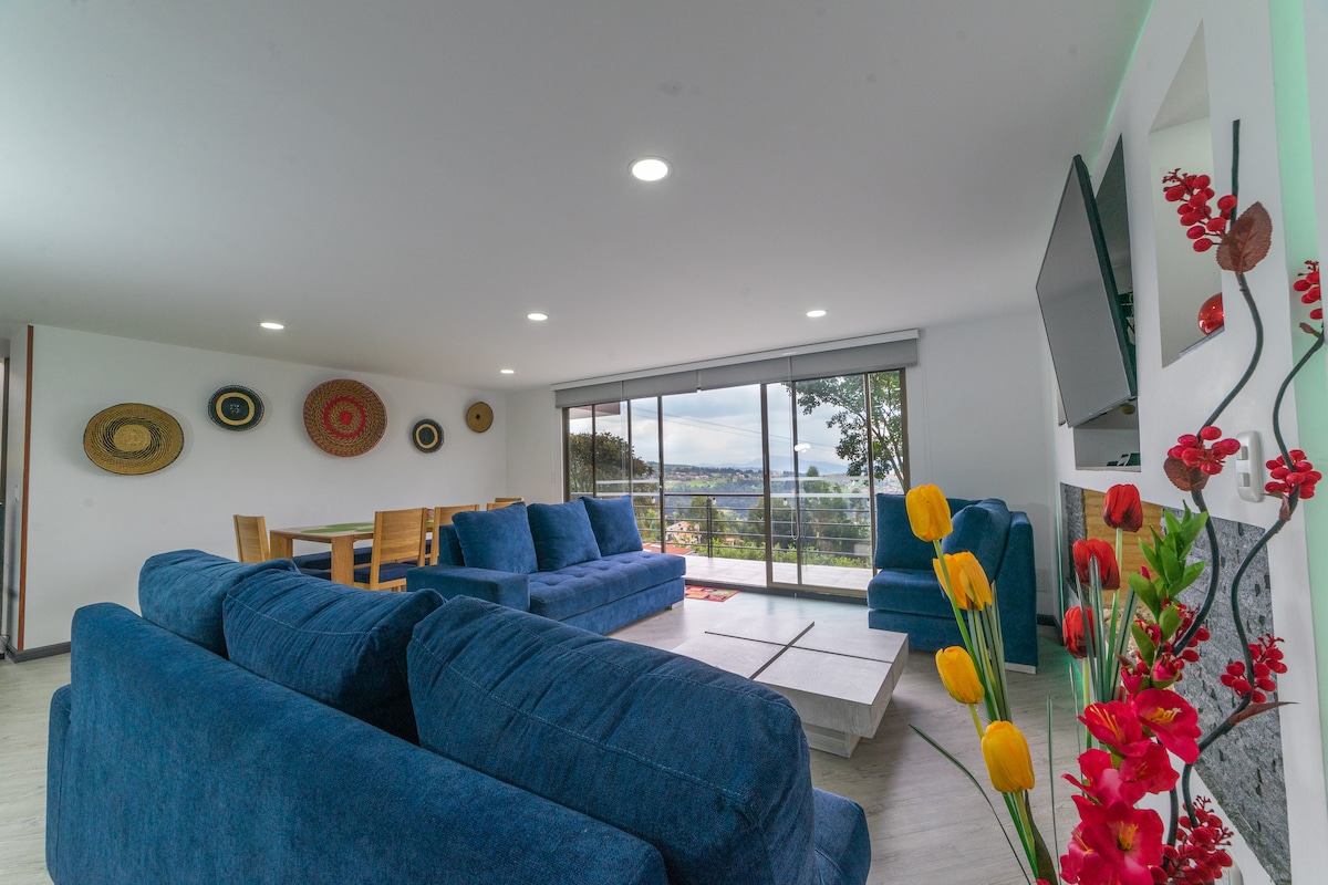 Appartement de campagne moderne à seulement 10 minutes de Villa de Leyva, dans un quartier calme et sûr. Avec 100m², le logement dispose de deux chambres, deux salles de bains, pièce principale avec cheminée, salle de télévision et d'autres équipements nécessaires à votre confort. La terrasse de 35m² est équipée d'une salle à manger auxiliaire et d'un barbecue à gaz idéal pour les amateurs de rôtis en plein air. Tous les espaces sont conçus pour se reposer, se connecter avec la nature et profiter avec votre famille et vos amis.